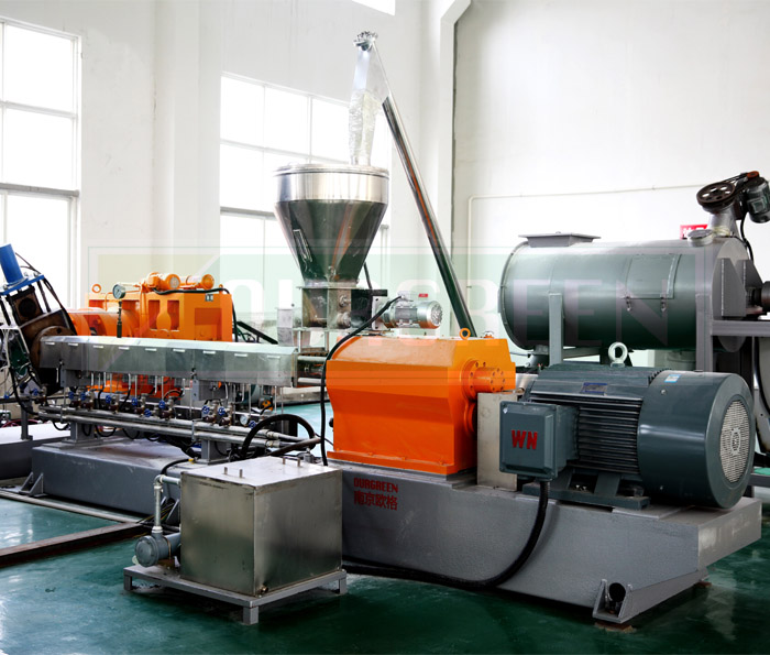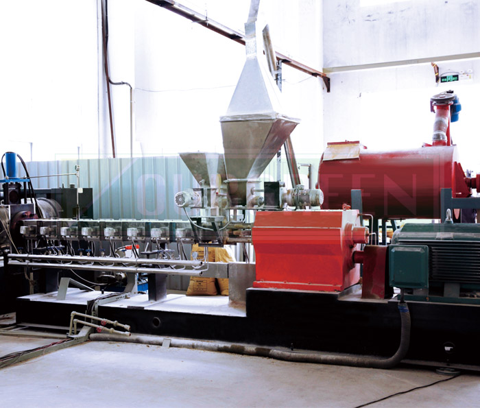 公司采購螺桿、加熱圈、底板、齒輪箱、電機(jī)等材料將其配套組成雙螺桿擠出機(jī)后投入使用。特有的雙螺桿設(shè)計使得原料可以充分混合,有效的確保了終產(chǎn)品的結(jié)構(gòu)和密度。根據(jù)物料在螺桿中的溫度、壓力、黏度等的變化特征,可將螺桿分為加料段、壓縮段、均化段和混合段。